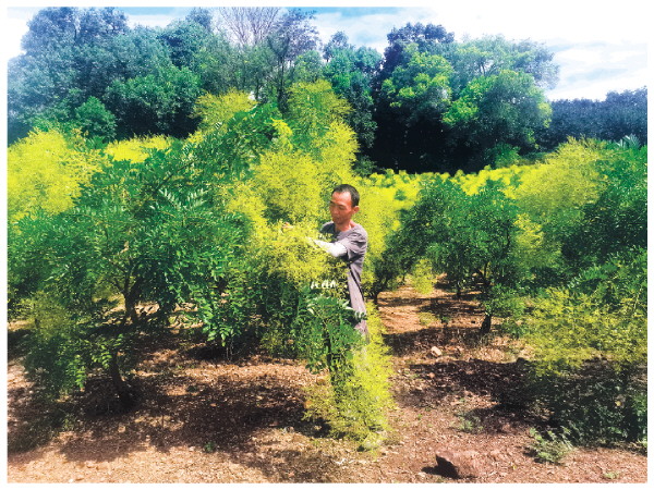 随着周围种植金槐的农民越来越多,金槐苗木的需求也提高了,于是我开始研究金槐嫁接。我叔叔研究金槐嫁接技术多年,我向他请教,最终让我的金槐种植更上一层楼。有了嫁接技术,我的金槐从一年一熟走向一年两熟,利润大大提高,而且这种双季金槐耐旱、抗病、易管理,亩产300多斤,别人想买苗,我都会给他推荐嫁接苗。