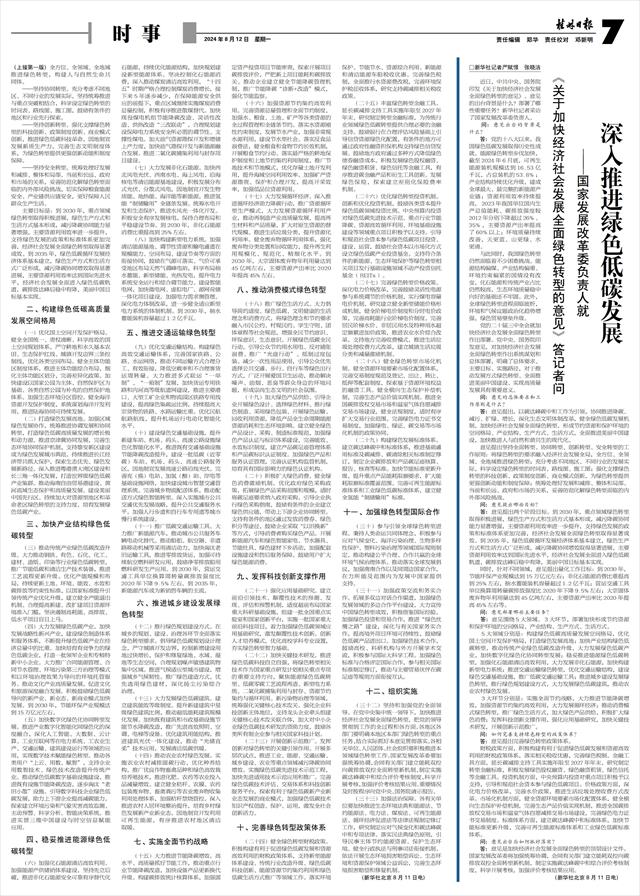 近日,中共中央、国务院印发《关于加快经济社会发展全面绿色转型的意见》。意见的出台背景是什么?部署了哪些重要任务?新华社记者采访了国家发展改革委负责人。