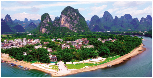 大河背村位于漓江风景名胜区核心区域,“元宝山”“九马画山”“黄布倒影”等景点就在该村附近,这里也是人民币20元背景图的取景地。近年来,大河背村积极开展生态修复,不断完善配套设施,陆续建成污水处理设施、沿岸绿道、文化长廊、旅游服务设施等,当地文旅业实现持续健康发展,群众收入不断增长。为了方便当地居民、游客出行和农副产品运输,阳朔县还修通了大河背岛至白沙镇的公路。