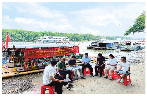 市人大常委会不断践行全过程人民民主,坚持开门立法、民主立法、科学立法,充分发动社会各界积极参与地方立法工作,广泛征求各方面意见建议,加快推进《桂林市旅游市场秩序条例(草案)》立法,不断助力桂林世界级旅游城市建设。图为8月15日,市人大法制委员会在雁山区草坪回族乡基层立法联系点,组织自治区、桂林市、雁山区和草坪回族乡四级人大代表及部分干部群众,对《桂林市旅游市场秩序条例(草案)》开展法规草案修改征求意见活动,共收集到修改意见建议15条。 曾武 何欢 摄