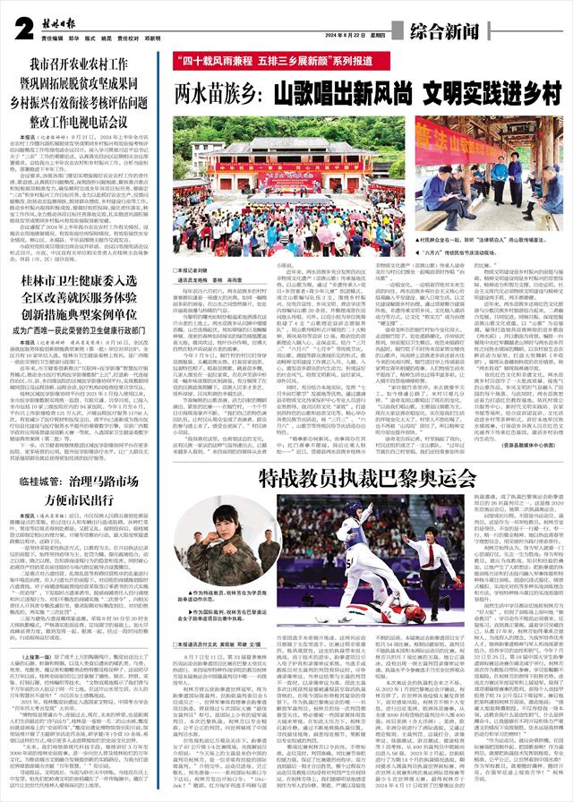 近年来,两水苗族乡充分发挥自治区非物质文化遗产(苗族山歌)传承基地优势,以山歌为媒,通过“非遗传承人+党员+乡贤寨老+青少年儿童”组团模式,成立山歌编写队伍2支,围绕乡村振兴、反电诈宣传、乡风文明、普法学法等内容编写山歌20余首,并整理成册在田间地头传唱。另外,以党小组为单位统筹组建了4支“山歌理论宣讲志愿服务队”,用山歌传唱形式开展党的二十大精神、移风易俗等宣讲12场,推动党的创新理论入脑入心、走深走实。结合“三月三”“六月六”“七月半”等传统节庆,用山歌、渔鼓等群众喜闻乐见的形式,推动精神文明建设工作真正入耳、入脑、入心,激发苗乡群众的内生动力,形成良好的社会风气,培育文明新风、良好家风、淳朴民风。