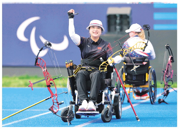 当日,在巴黎残奥会射箭女子个人W1级金牌争夺赛中,中国选手陈敏仪战胜捷克选手普尔塔尔·穆西洛娃,夺得金牌。 新华社记者侯俊 摄