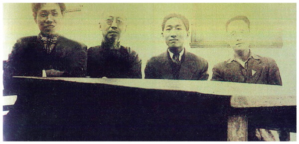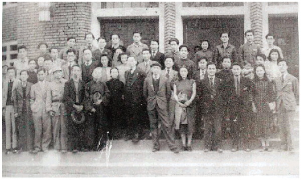 图①:1944年西南剧展期间,柳亚子与田汉、欧阳予倩等著名文化人在桂林合影