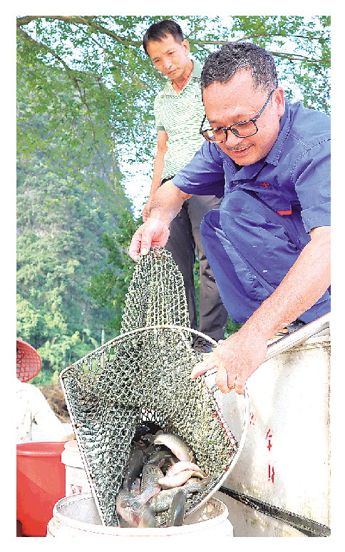 9月3日,记者来到永福县罗锦镇金福村,在这里,“稻+鱼”共生模式成了村民们津津乐道的话题。记者看到,稻田里,一尾尾鱼儿自由穿梭,它们不仅是生态的守护者,更是农民增收的“金钥匙”。据了解,这些鱼儿以其天生的捕食能力,有效遏制了稻田的害虫与杂草,大大减少了农药和除草剂的使用量,让稻田回归自然,水稻品质也得到了显著的提升。同时,鱼儿的排泄物通过自然转化,成为稻田的养分,实现了生态循环与资源的高效利用,真正做到了“一水两用、一田双收”。