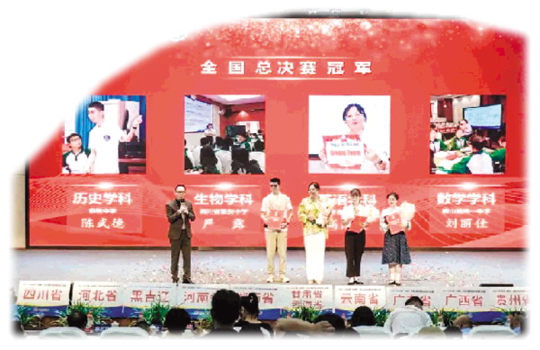 ▲临桂中学陈武德老师在“好教育”大单元教学同课异构冠军总决赛中获历史学科全国冠军。 (临桂中学供图)