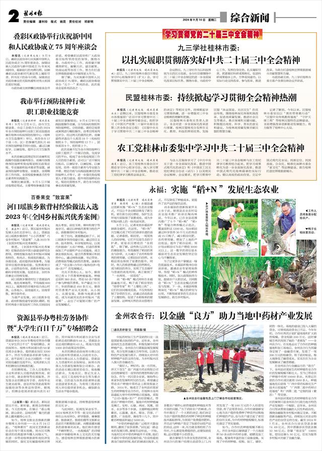 本报讯(记者周文俊 通讯员梁永庄)近期以来,民盟桂林市委及全市各级基层广泛召开学习贯彻中共二十届三中全会精神专题会议,组织学习《中国共产党第二十届中央委员会第三次全体会议公报》《民盟中央关于学习贯彻中共二十届三中全会精神的决定》等相关文件,持续掀起学习贯彻热潮,进一步增强对三中全会精神的理解和把握。