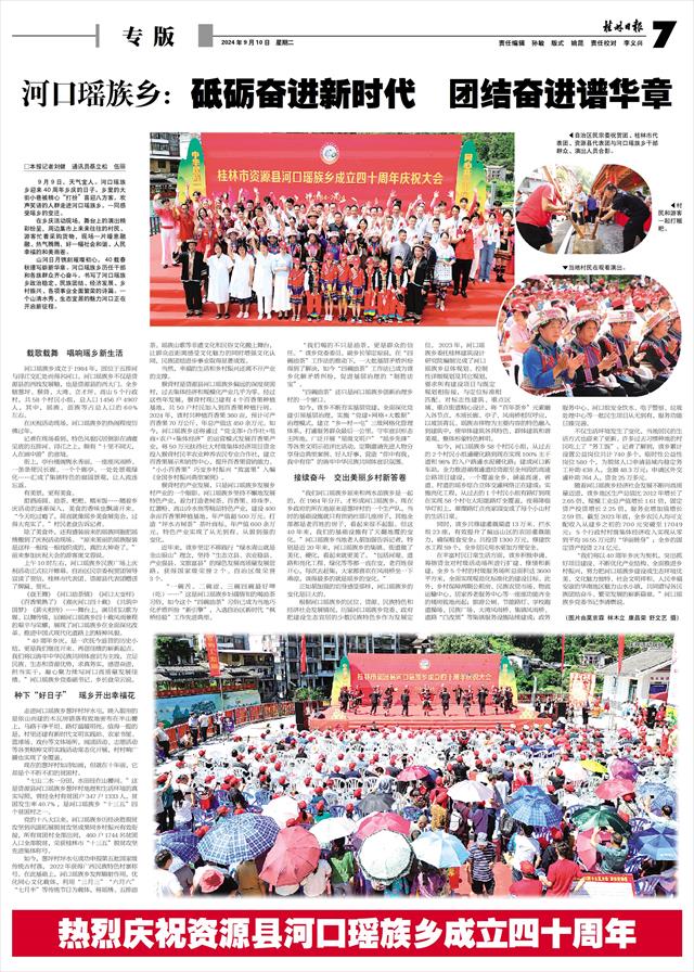 本报讯(记者周文俊)在全面贯彻落实党的二十届三中全会精神之际,9月9日,资源县河口瑶族乡举行成立40周年庆祝大会,瑶乡同胞满怀喜悦,欢欣鼓舞,与前来参加庆祝大会的各界人士共庆佳节、共享欢乐。