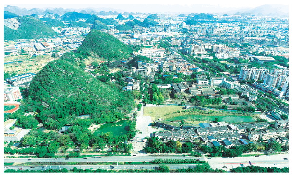 独秀峰和靖江王府是桂林的城市文脉,是自然景观与城市记忆交相辉映的典范。独秀峰被誉为“南天一柱”,站在峰顶能俯瞰桂林古城,是桂林续八景之一。独秀峰在历史上被视为桂林的“主山”,是桂林文脉的缘起,它见证了最具影响力的桂林山水诗句“桂林山水甲天下”的诞生。位于独秀峰下的靖江王府是我国规制最特别、目前保存最为完整的明代藩王府,是桂林市区最早被确定的国家级文化遗存,与靖江王陵共同构成了一座明代艺术宝库和国家考古遗址公园。2012年,独秀峰·王城景区被国家文化和旅游部公布为国家AAAAA级景区。