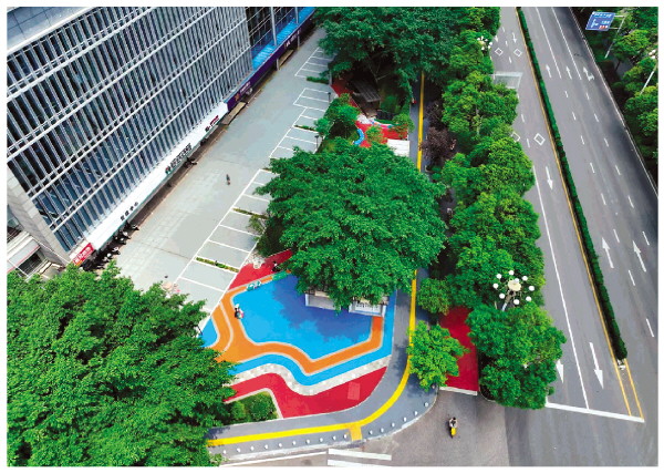 龙湖大厦门口山水街巷公园建成使用后,可更好地满足周边居民休闲交流、儿童玩耍游乐、老人锻炼身体的需求。李腾钊 摄