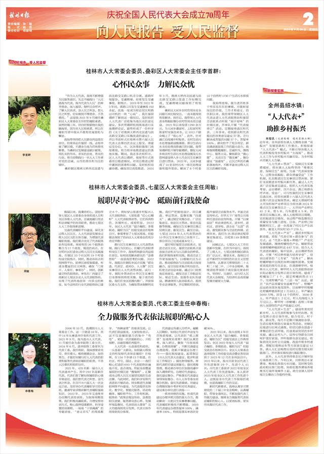 “作为人大代表,我将不断增强为民服务意识,矢志不渝践行‘人民选我当代表,我当代表为人民’的神圣使命,深入基层,倾听民众呼声,了解人民诉求,急人民之所急,想人民之所想,切实做到不辱使命、不负重托。”这是我2021年9月刚任叠彩区人大常委会主任时的履职承诺,虽然时隔三年,但仍时刻萦绕在我的脑海里。因为对人民有承诺,所以在履职尽责中我从不敢有丝毫放松与懈怠。