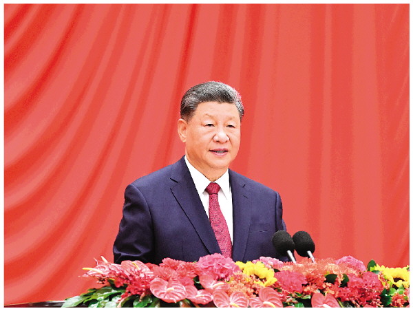 ▲9月30日晚,庆祝中华人民共和国成立75周年招待会在北京人民大会堂隆重举行。中共中央总书记、国家主席、中央军委主席习近平出席招待会并发表重要讲话。 新华社记者谢环驰 摄