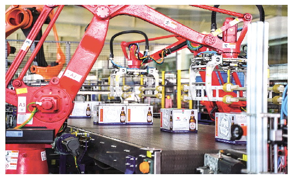 在燕京啤酒(桂林漓泉)股份有限公司,机器人得到普遍应用,生产管理的智能化水平在国内啤酒行业处于领先。