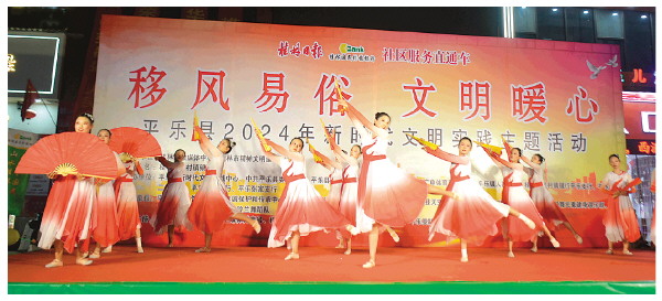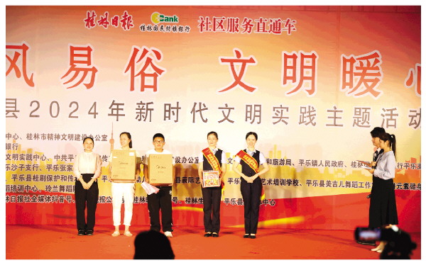 10月13日,“移风易俗·文明暖心”平乐县2024年新时代文明实践主题活动暨桂林日报·桂林国民村镇银行社区服务直通车活动走进平乐县清华园广场,开展精彩的文艺演出和贴心的志愿服务,为现场观众带去了喜悦和温暖。本次活动由市融媒体中心和市文明办联合主办,桂林国民村镇银行总冠名,平乐县新时代文明实践中心、县委宣传部、县文明办、县文广体旅局、平乐镇人民政府和桂林国民村镇银行平乐支行、平乐二塘支行、平乐沙子支行、平乐张家支行联合承办。