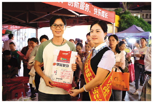 除了精彩的表演,活动现场还穿插了有奖互动环节。“移风易俗的实质是什么?”“自己的银行账户是否可以出借?”有奖问答环节让广大观众在寓教于乐中收获了移风易俗及金融安全知识;幸运观众抽奖环节随机抽取宣传单的序列号,被抽中的幸运观众即可把精美实用的微波炉、电压力锅、电磁炉、2.5公斤象牙米等礼品带回家。