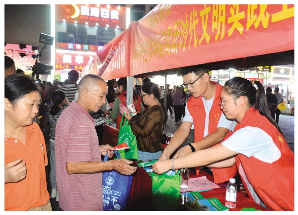 各单位工作人员通过设立咨询台、悬挂横幅、发放宣传资料等形式,围绕移风易俗、卫生保健、金融反诈、消防安全、司法援助等内容,向群众提供政策咨询服务和科普知识宣传,多方携手共同提升城乡文明面貌,推动新时代文明实践活动走深走实。