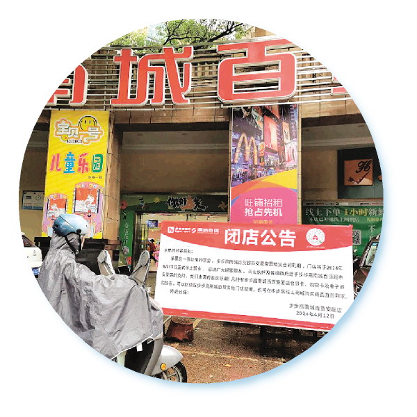 一位市民在观看桂林南城百货超市安厦店宣布停止营业的公告。(资料图片)