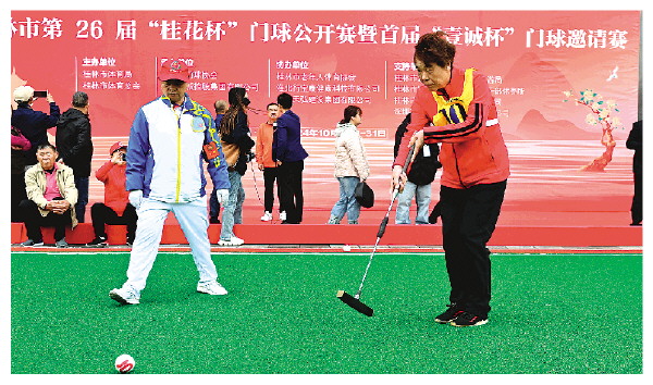 本报讯(记者周文俊 通讯员朱国瑞)10月28日,2024年桂林市第二十六届“桂花杯”门球公开赛暨首届“壹诚杯”门球邀请赛在象山区德天广场开幕,共有来自全国各地的43支队伍近400名门球爱好者参加赛事。