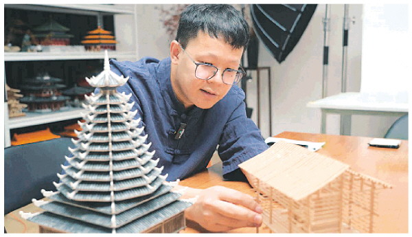 模型实木交错,视线穿过其中,这个年轻人已然看“透”古建。