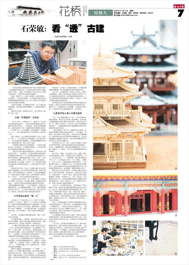 转折发生在大学毕业前夕,在加拿大展出学习的经历开阔了他的视野,他意识到,无论是自己的技术,还是现有的“小作坊”模式,都无法让制作建筑模型像一份事业一样持续下去。于是,毕业后,石荣敏暂时关闭工坊,前往建筑模型制作较为成熟的江浙地区继续学习,其间,他还拜了一位广西建筑专家为师,更深入地钻研古建筑营造技艺。
