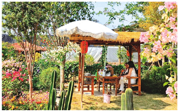 而在叠彩区尧山花卉基地的“廖家小铺”园艺场里,不少市民携家带口慕名而来,在中国风的庭院内观鱼、赏花、品茗、踏秋。