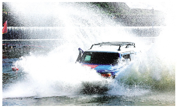 飞驰的越野车在河道上演“速度与激情”。 (灌阳县融媒体中心供图)