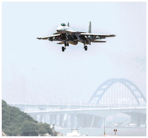 2017年1月,歼-15第一次随辽宁舰抵达南海海域,完成了在黄海、渤海、东海、南海四大海域的起降训练。