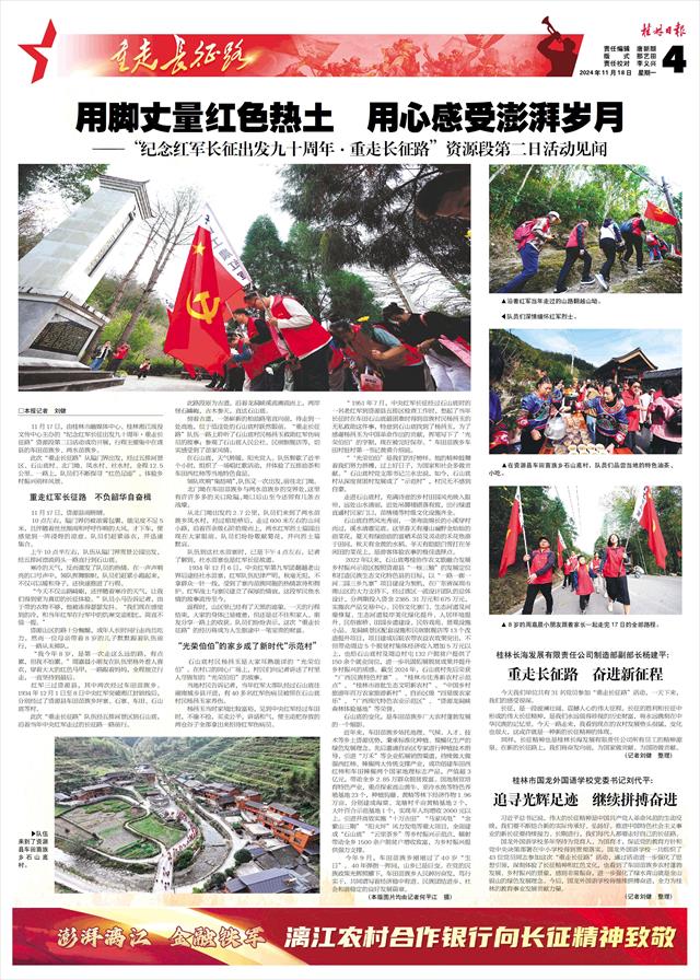 本报讯(记者刘健)11月17日,由桂林市融媒体中心、桂林湘江战役文传中心主办的“纪念红军长征出发九十周年·重走长征路”资源段第二日活动顺利开展,百余名队员身穿红色马甲,走进了车田苗族乡、两水苗族乡。此次路线从隘门界出发,经过五排河景区、石山底村、北门坳、凤水村、社水村,全程12.5公里。