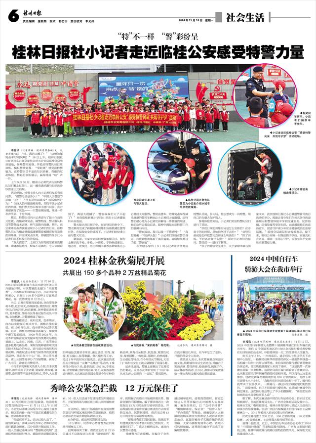“孩子的健康安全成长,关乎家庭幸福与国家未来,此次桂林日报社小记者进警营开放日活动的举办,既能让青少年们在各式各样的设备展示和警营体验中学到交通安全、反诈防骗、防毒禁毒等安防知识,也能增强他们的法治意识,营造守护青少年安全健康成长的浓厚氛围。”临桂分局副局长唐俊颖表示,接下来,临桂公安将一如既往携手学校、家庭及社会各界,靠前一步用心守护,为青少年平安成长贡献警察力量。