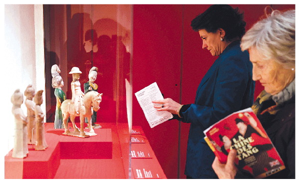 11月18日,在位于法国巴黎的吉美国立亚洲艺术博物馆,人们参观“中国·唐——一个多元开放的朝代(7至10世纪)”展览。 新华社记者高静 摄