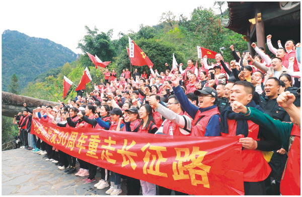 长征精神映今朝,重踏征途壮志豪。跟随当天参加“重走长征路”活动的队伍一路向大山挺进,红色的足迹无言,却又有力述说着眼前的山乡巨变。与此同时,一种共识也逐渐在队伍中形成——要继续新的长征,让这片红色热土在新时代持续迸发活力。
