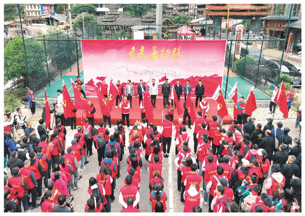 ▲11月20日,“纪念红军长征出发九十周年·重走长征路”龙胜段活动启动仪式在江底乡泥塘村龙胜森林公园门前广场举行。