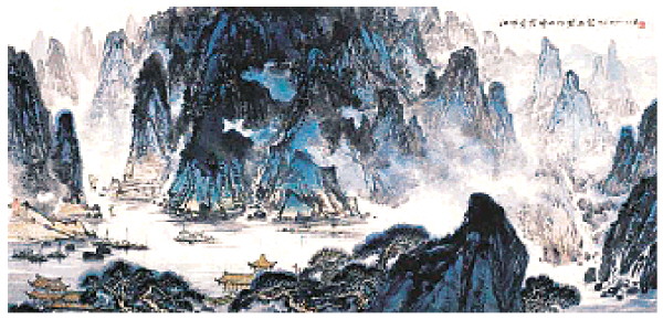 当今许多美术评论家对阳太阳山水画的评论,都特别提到了“境界”一词。因为他的国画,早已进入一种自由的境界,初期的西画修养、水彩画修养,被阳太阳极其自然地融化到中国画当中。桂林山水天下最,即使是巍然耸立的青峰、摇曳多姿的江畔竹林、碧波荡漾的江水、奇洞、美石和渔舟唱晚,从来不脱一个“秀”字,但是从阳太阳的画中,你能够读到雄健、凌厉、浑厚和宏大。