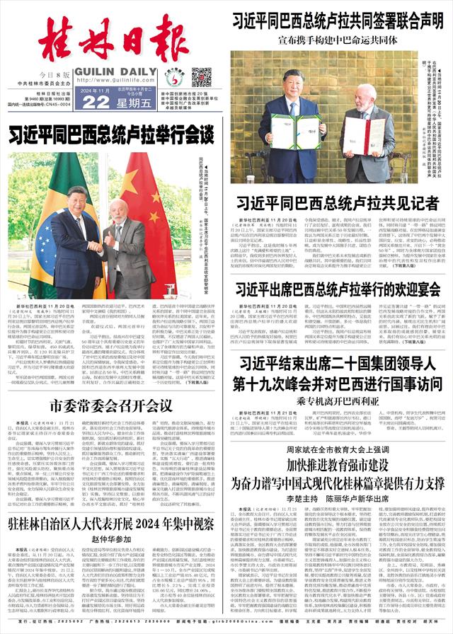 本报讯(记者周绍瑜)11月21日,自治区人大常委会副主任、桂林市委书记周家斌主持召开市委常委会会议。