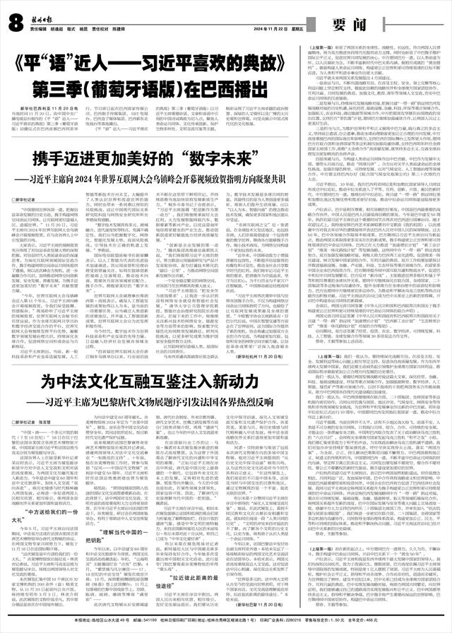我们就中巴关系未来发展达成新的战略共识,其中最重要的是,我们共同决定将双边关系提升为携手构建更公正世界和更可持续星球的中巴命运共同体,同时将共建“一带一路”倡议同巴西发展战略对接。在世界格局加速演变的背景下,这体现了中巴两个发展中大国识变、应变、求变的决心,必将推动两国关系继往开来、开启下一个“黄金50年”,同时为全球南方国家团结自强树立榜样,为提升发展中国家在全球治理中的代表性和发言权作出新的贡献。(下转第八版)