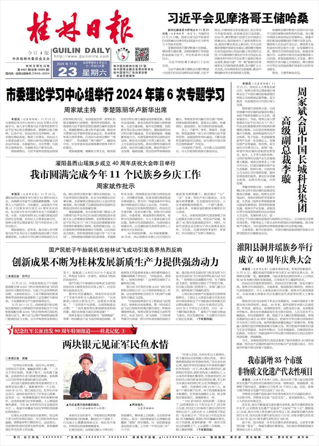 本报讯(记者周绍瑜)11月21日,市委理论学习中心组举行2024年第6次专题学习,深入学习贯彻习近平强军思想和习近平总书记有关重要讲话、重要指示批示精神,以及中央、自治区有关文件精神,进一步强化理论武装,推动工作落实。自治区人大常委会副主任、桂林市委书记周家斌主持会议并讲话。市委副书记、市长李楚,市政协主席陈丽华,市委副书记卢新华出席。