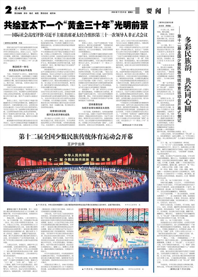 新华社三亚11月22日电 第十二届全国少数民族传统体育运动会22日在海南三亚隆重开幕。中共中央政治局常委、全国政协主席王沪宁出席开幕式。