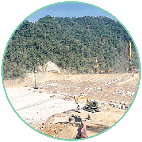 ◤水库除险加固工程施工现场。 记者周文琼 摄