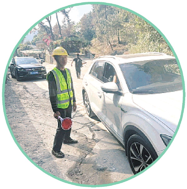 ▲工作人员对导航到大坝施工处的车辆进行劝离。