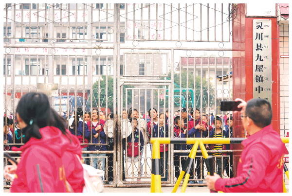 队伍经过九屋镇中心小学引起孩子们的围观,以实际行动传承长征精神,就是对下一代最好的爱国主义教育。