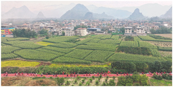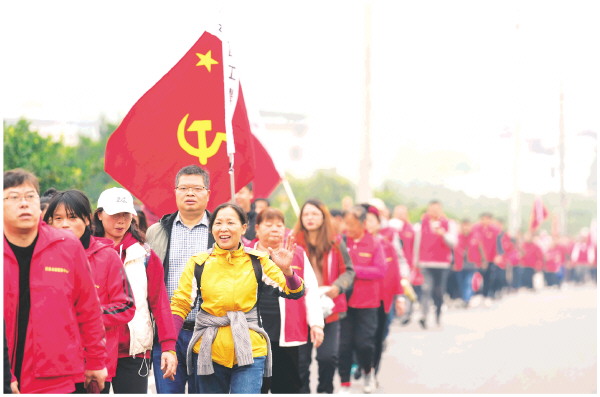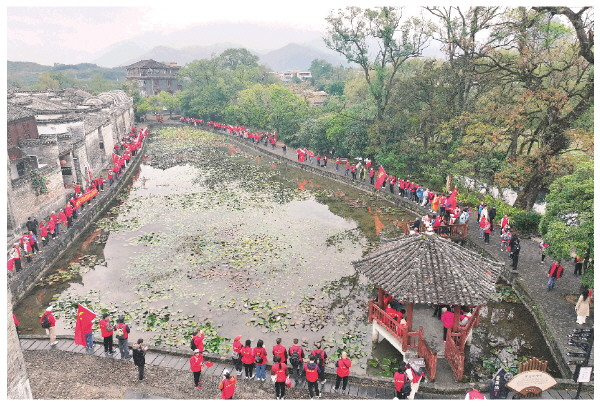“重走长征路”队伍经过的村庄一栋栋小洋房掩映在青山下、田野旁,乡村振兴战略的实施让如今的农村越来越美丽、富饶。 (本版图片均由记者何平江摄)