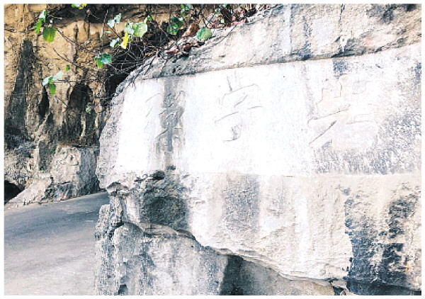 图①:刻于七星岩洞口的《西江月·游栖霞洞》。