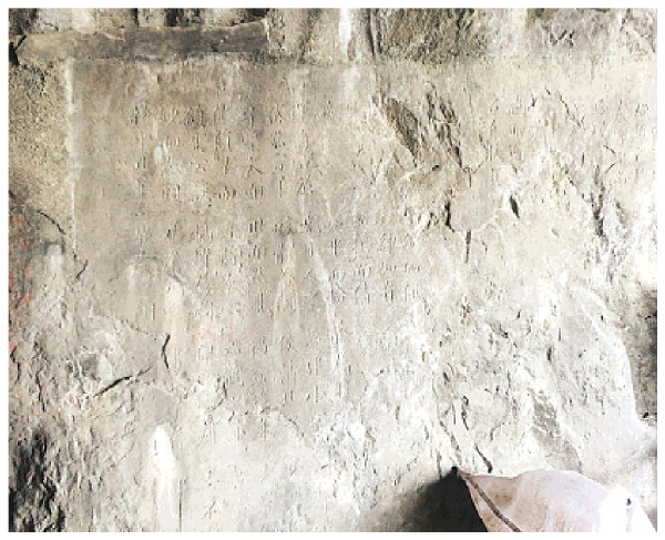 图②:留春岩洞内的《乳床赋》石刻,可惜被破坏得厉害。