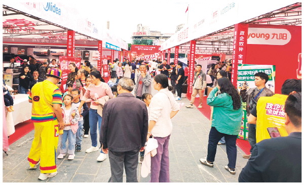 11月9日,由市商务局指导的京东家电“政企双补 全城焕新”专场补贴活动在七星区甲天下广场举行,吸引了许多市民通过以旧换新政策购买新家电。