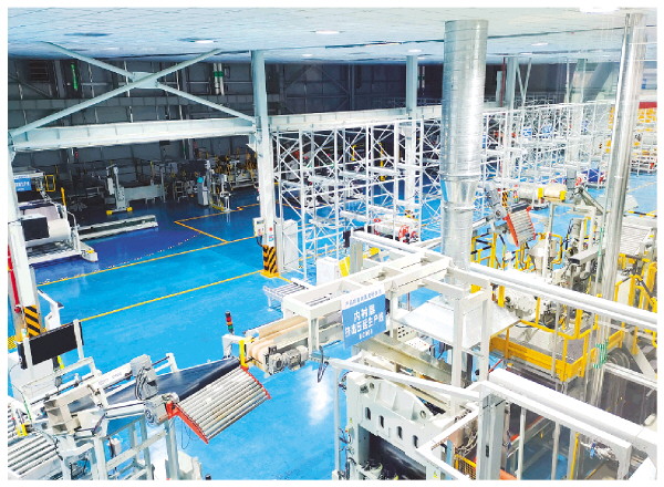 桂林蓝宇生产车间内衬层挤出压延生产线。 记者徐莹波 摄