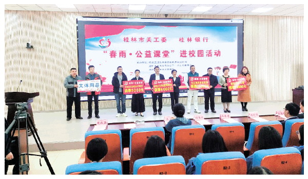 近日,一场充满爱心与教育意义的活动在龙胜中学热烈展开。市关工委携手桂林银行共同走进校园,为师生们带来了别开生面的“春雨·公益课堂”。