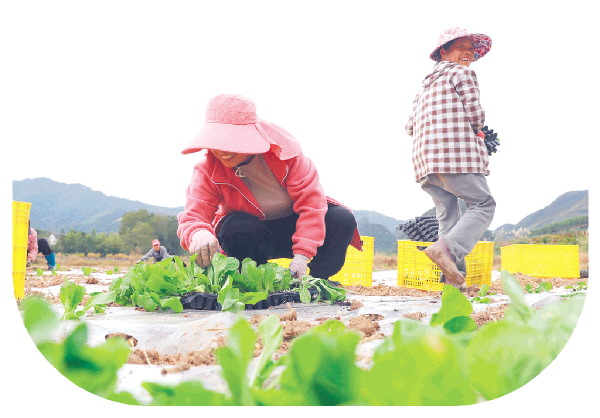 在朝阳村,村民正在种植娃娃菜。记者 李忠波 摄