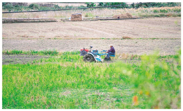 ▲农机手驾驶农耕机整地。