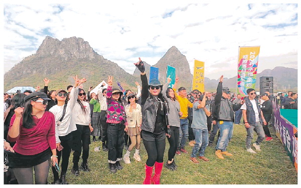 12月1日,游客在金鸡河水库音乐节上狂欢。