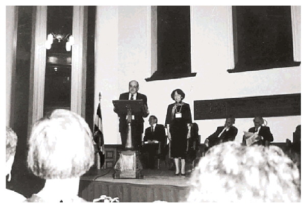 图④:1991年,叶嘉莹当选加拿大皇家学会院士,接受颁发的证书。