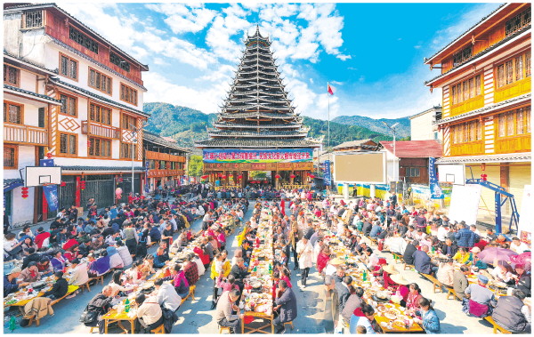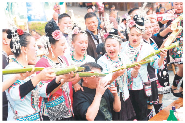 本报讯(记者李忠波 通讯员潘志祥 申亮红 文/摄)12月1日,农历十一月初一,龙胜各族自治县平等镇广南村张灯结彩、热闹非凡,首届“火塘侗年节”开幕。身着绚丽节日盛装的侗族同胞与慕名而来的八方游客欢聚一堂,开展民俗巡游、芦笙踩堂、舞草龙、侗族百家宴等民俗活动,载歌载舞欢度侗年,共赴一场满含传统韵味与特色风情的民俗文化盛会,沉浸式领略侗族文化的魅力。